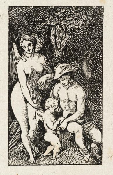 Edward A. Sallenbach made this lithograph print, Okinawa Shower, sometime in the 20th century. Lithography is a printmaking process that relies on the contrast between oily and water-based substances. The artist draws an image on a flat stone or metal plate using a grease-based crayon. Water is then applied to the surface, adhering only to the areas not covered by the greasy drawing. Next, oily ink is rolled onto the surface, sticking only to the greasy areas of the drawing. Finally, paper is pressed against the surface, transferring the inked image onto the paper. The nature of the lithographic process, combined with the artist's skillful hand, gives this print a distinctive appearance. The rich blacks and subtle gradations of tone create a sense of depth and texture. The image is imbued with social and cultural significance, a seemingly mundane moment of respite for soldiers at war. Looking closely at materials, making, and context allows us to understand the full meaning of the artwork, challenging traditional distinctions between fine art and craft.