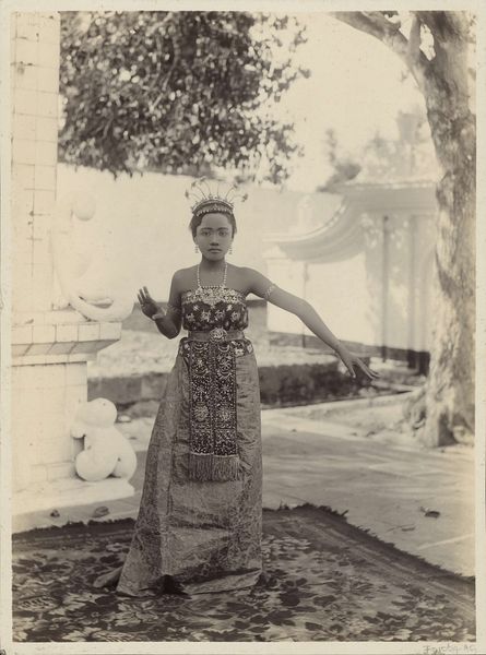 This photograph of a Javanese woman, holding a fan and wearing a crown, was taken by Kassian Céphas. As a studio portrait, it reflects the artist's mastery of photographic techniques and the sitter's carefully arranged attire. But it also carries significant social weight. Notice how the woman is adorned in elaborate jewelry and traditional clothing, elements of Javanese culture that required skilled craftsmanship to produce. The batik patterns on her skirt, for instance, are evidence of a labor-intensive process involving wax-resist dyeing. Every stage involved time and knowledge. The photograph captures a moment of cultural expression but also hints at broader issues of labor, class, and colonialism. As a Javanese photographer working during the colonial era, Céphas’s work complicates traditional distinctions between art and craft. The photograph not only immortalizes a Javanese woman, but also serves as a reminder of the complex interplay between identity, representation, and power.