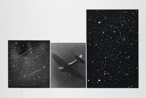 Editor: Here we have Vija Celmins' "Untitled (Desert-Galaxy)," a monochromatic work featuring two distinct panels. One depicts a star-filled galaxy, the other a barren desert. What sociopolitical commentary do you believe Celmins is making by pairing these seemingly disparate images? Curator: Celmins, working in a predominantly male art world, often subverted traditional landscape depictions. Here, she presents two seemingly infinite, yet desolate landscapes. This juxtaposition challenges romantic notions of both the sublime and the mundane, prompting us to consider the environmental impact of relentless expansion, both terrestrial and extraterrestrial. It's about our footprint, isn’t it? Editor: I see. So, it's not just about representation, but a commentary on exploitation and scale? Curator: Precisely! Celmins invites us to contemplate our relationship with these vast spaces and the ethical implications of claiming them, whether it's land or cosmic territory. Editor: That's given me a lot to think about. Thank you. Curator: It’s been a pleasure. I'm glad we explored the deeper resonances in Celmins' work.