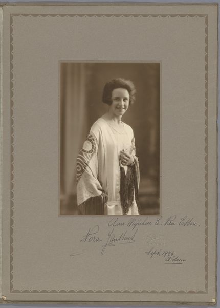 Editor: So, here we have a portrait of Queen Juliana of the Netherlands, possibly from 1948, taken by Harry Grubben. The photograph has definitely aged, giving it a sort of vintage feel. How do you interpret this image within the historical context of the Netherlands at that time? Curator: This portrait, likely taken shortly after the Second World War, offers us a fascinating insight into the construction of national identity. How is Juliana being presented, and what message does this convey to a nation rebuilding itself? We must ask, is this image simply a regal portrait, or does it operate on a deeper level, considering the role of women in positions of power at the time? Editor: It seems like a fairly standard portrait, right? Curator: But who defines what’s standard? If you consider the feminist discourse, representation of women in leadership positions have often had to navigate tricky terrain – appearing authoritative yet feminine, strong but approachable. Looking at her attire, her smile, the flowers—how are these choices reinforcing or challenging gendered expectations in post-war Netherlands? And to what extent are we as viewers implicated in perpetuating, or subverting these ideas? Editor: I see what you mean. It’s more complex than just a nice picture of the queen. The context of post-war rebuilding and shifting gender roles gives it a whole new dimension. Curator: Exactly! This isn’t just about aesthetics; it's about power, representation, and the intricate dance between identity and societal expectations. By understanding the period’s political and social environment we are invited to interrogate the image, as well as the society, that produced it. Editor: That really changed how I see this photo. It’s not just a historical image, but a document reflecting the complexities of its time. Curator: Precisely. Analyzing art is about placing it within its historical narrative to interpret its meaning, beyond what the eye perceives at first glance.