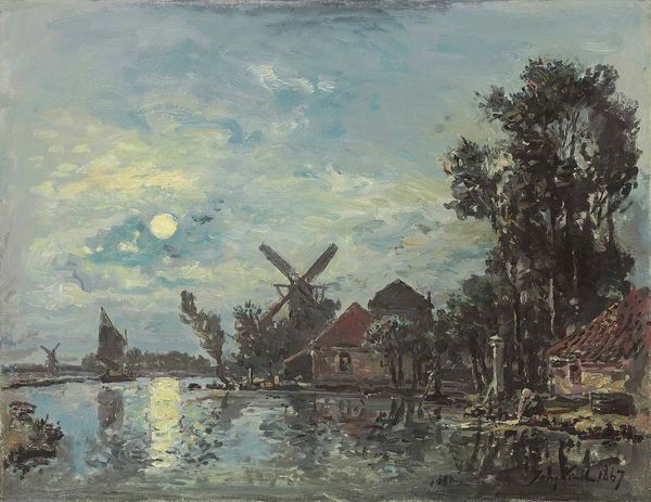 Claude Monet captured ‘Windmill at Zaandam’ during his stay in the Netherlands in 1871, during the Franco-Prussian war. Monet, like many impressionist painters, was interested in the effects of light and atmosphere. The painting depicts an industrial landscape, dotted with windmills, boats, and figures. The windmills were integral to the Dutch economy, fulfilling a variety of roles, including milling grain and pumping water. In this period, the Netherlands was becoming more industrialized while still retaining its distinctive cultural identity. Monet’s painting captures this tension between tradition and modernity. The scene creates a melancholic effect through its muted palette, the overcast sky, and the silhouettes of the boats. Monet’s painting evokes a sense of place and time, reflecting both the economic realities and the atmospheric conditions of the Netherlands during the late 19th century. The quiet solitude of the scene invites you to contemplate the relationship between humanity, nature, and industry.