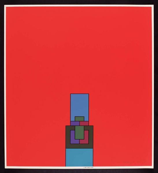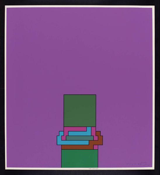 Editor: This untitled piece by Robyn Denny features geometric shapes and bold colors. It’s striking how the smooth surfaces contrast with the industrial feel of the shapes. What story do the materials and forms tell you? Curator: Considering Denny's work within post-war British art, I see an exploration of how industrial printing processes democratized art. The flat, unmodulated color fields remove the artist’s hand, transforming art into a mass-producible object. What implications does this have for the concept of artistic labor? Editor: That's fascinating, I hadn't considered the impact of production methods on the art itself. Curator: Precisely! Denny prompts us to question the division between high art and everyday design and its consumption.