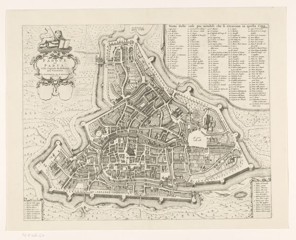 Editor: This is a print titled "Stadt und Castel Landscron von I.K.M Christiano Quinto Erobert Anno 1676" created sometime between 1676 and 1699. It's currently held at the SMK, and attributed to Johann Husman. It shows a bird’s-eye view of a city and a star fort, seemingly under siege. There are ships in the foreground and what appears to be an army encampment in the distance. The linear quality of the engraving gives the scene a very factual, almost cartographic mood. What historical echoes do you hear when looking at this image? Curator: This engraving pulses with the energy of a specific historical moment. Look at the city itself. Do you notice how the fortifications seem to dominate the urban space, even dictate its form? What does this tell you about the cultural priorities of the time? Editor: Well, the star fort is really prominent, taking up a good third of the image. That certainly suggests security was top of mind! Curator: Precisely! Star forts like these emerged as a response to advancements in artillery. They embody a specific kind of visual language – a promise of protection and military power. How do you interpret the inclusion of ships and the distant army? Are they simply contextual, or do they add a symbolic layer? Editor: I see your point. The ships imply naval power, controlling trade routes, while the distant army shows military strength. These were more than simple landmarks in a military scene. Curator: Absolutely. These details are imbued with cultural memory. These elements reinforce themes of conquest, power, and the role of military technology. And how does the choice of engraving, a reproducible medium, influence our interpretation? Editor: That's a good question! Being easily reproducible probably meant it could be shared widely as propaganda after the conquest, influencing opinions about who Christian V was. I never considered this a piece of propaganda before! Curator: Exactly! Consider how visual symbols shape and solidify collective understanding, impacting future generations. Editor: It's interesting how one image can tell so many stories about power, protection, and even propaganda. I am walking away from this with a changed perception.