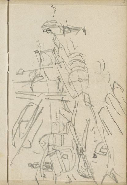 George Hendrik Breitner made this drawing, titled "Figures, Possibly on a Construction Site," with a pencil on paper, and it now lives at the Rijksmuseum. Look at these lines, would you say that Breitner was interested in depicting form or space? For me it’s all about motion. Notice the stark contrast between the quick, erratic marks and the static, architectural elements they evoke. It's like watching someone think, a stream-of-consciousness captured in graphite. The texture of the paper peeks through, giving the sketch an unfinished quality, like a fleeting impression. Breitner seems to be saying that, in-between the built spaces, there are living, breathing figures. It’s almost a flip on Impressionism, except the everyday isn’t so pretty. Think of Daumier, with his gritty realism, but with a modern, fragmented sensibility. Ultimately, it’s a reminder that art isn't just about what you see, but how you see it.