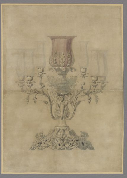 Editor: Here we have Thomas Chippendale's "Chimneypiece, in Chippendale Drawings, Vol. I", a pencil and colored-pencil drawing from somewhere between 1748 and 1758. It's such a delicate rendering. What draws your eye when you look at this design? Curator: My immediate focus is on the production process, the social dynamics, and, frankly, the labor embedded within. We're looking at a luxury object *in potentia*. A drawing, yes, but ultimately a design destined for execution. The "how" and "by whom" are crucial questions. Editor: That's interesting. I was thinking about the form itself. The lines are so elegant and sort of… light. Curator: But *whose* elegance, and *whose* lightness? Think of the artisan expected to translate this drawing into reality. Their skill, their hours…are they considered equally "elegant"? The drawing elides their contribution, no? We see "Chippendale," not the hands that would eventually carve the stone or wood. Editor: So you're saying the drawing kind of… masks the actual production? Curator: Precisely. It presents an idealized image, obscuring the very real labor required for its realization. Consider the access to these luxury goods: who commissioned them? Who consumed them? Chippendale was savvy, producing pattern books that widened access but ultimately perpetuated class divisions through material possession. Editor: I hadn’t thought about it that way, but it’s a good reminder to look beyond the surface. It shifts my focus away from just aesthetics to thinking about the economic implications. Curator: Exactly. We must engage with the artwork's social life. This piece challenges the hierarchy of design over execution and exposes questions about luxury and labor during that period. Editor: Definitely gives me a lot more to consider now. Thanks!