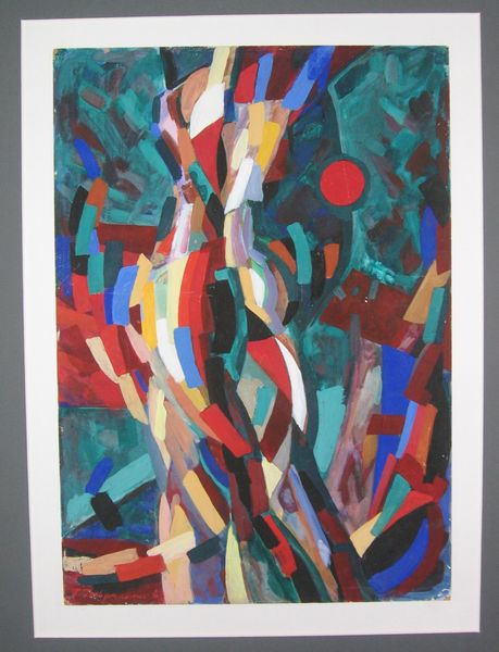 This watercolor abstract composition was made by Hryhorii Havrylenko, though we don’t know exactly when. It's a puzzle of shapes, rendered in soft, dreamy colors, kind of like a landscape viewed through a kaleidoscope. There's a real tenderness to the way Havrylenko handles the watercolor. The paint is so thin and transparent, it almost feels like the colors are breathing on the paper. Look at how he layers the blues and greens, creating a sense of depth and atmosphere. Then notice the pops of orange and purple, adding a touch of whimsy to the composition. It feels like he's letting the colors guide him, allowing the painting to emerge organically. This piece reminds me a little of Hilma af Klint's spiritual abstractions, though Havrylenko's touch is lighter, more playful. Ultimately, it’s a reminder that art is an ongoing conversation, a process of exploration and discovery that unfolds across time and space.