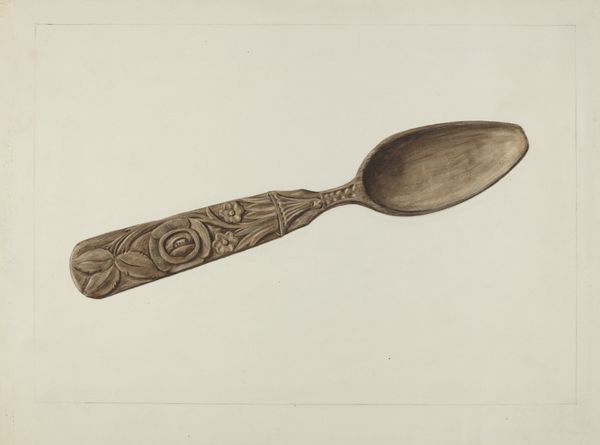 Jules Lefevere created this watercolor of two tablespoon molds, and while the date is unknown, Lefevere lived between 1855 and 1995. The drawing celebrates the usually unseen tools of production, rather than the final product. The spoons themselves would likely have been made of pewter or silver, cast in these molds using techniques of metalworking. Lefevere highlights the textures and forms of these objects, emphasizing the physical labor involved in crafting them. It prompts us to consider the broader social context of craft production, and the skilled traditions involved in shaping everyday objects. By focusing on these molds, Lefevere elevates them from functional tools to subjects of artistic interest, challenging traditional distinctions between craft and fine art, and encouraging viewers to appreciate the artistry inherent in the making process.
