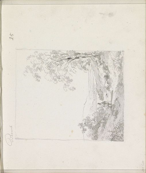 Curator: What a delicate pencil sketch. The initial impression is one of hushed stillness. Editor: Andreas Schelfhout rendered this drawing, entitled "Skaters on a Frozen Canal by a Farmhouse," sometime between 1825 and 1829. The Rijksmuseum holds it within its collection. What aspects stand out to you beyond its quietude? Curator: The tentative strokes—they hint at social divides. This wasn't intended as a finished, polished artwork for public consumption, more like a private musing reflecting daily life, which offers a privileged, behind-the-scenes insight into the rural Dutch landscape of that era. Editor: I agree it provides access, though I'd say such works help constitute national identity itself. Schelfhout played a crucial role in popularizing winter landscapes, establishing a visual repertoire through which the Dutch collectively imagined themselves and their relationship to their environment. Curator: You bring an important point regarding visual language formation; however, who was, and is, actually *included* in this "collective imagination"? The idyllic scene normalizes specific experiences, class positions, potentially excluding those outside the dominant social group reflected. Editor: Certainly, the Romantics had a tendency to aestheticize rural life, overlooking social disparities. Schelfhout’s works were consumed mostly by the bourgeoisie. His work was often commissioned by them. Curator: It is important that we keep that context in mind as we view this art. His images reflect, at least, an intention to offer comfort to a patron, a specific consumer. Editor: Absolutely. These winter scenes often served as comforting symbols of national pride, masking deeper social and political tensions, particularly during times of upheaval. Curator: Looking at it, I’m aware of how art can perform multiple functions: documentarian, aesthetic, ideological, personal and political statement, commodity—it all converges. Editor: Precisely. Analyzing such sketches gives us glimpses into the artist’s process, social conditioning, and the formation of a distinctly Dutch artistic identity, so valuable in this setting. Curator: Yes, through it, it does give way to further explorations of how we, as society, are viewing this art. Editor: Well said! Thanks for sharing your perspectives!