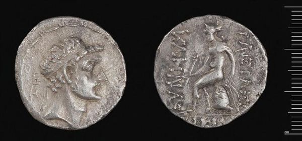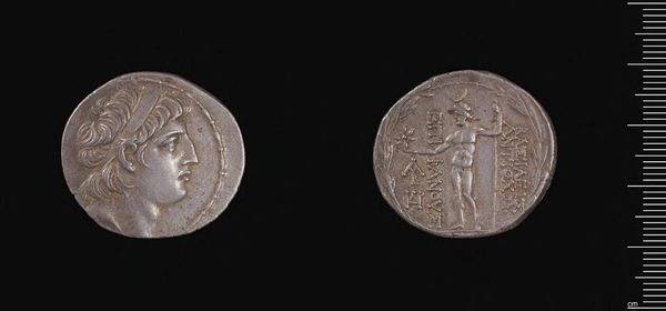 Curator: This is a Tetradrachm of Demetrios Poliorketes of Macedonia, minted in Salamis. Look closely; each side is rich with symbolism. Editor: The depiction of Poseidon, nude and holding a trident, immediately evokes power and control, but there's also something assertive and boastful about this representation of masculine strength. Curator: Indeed! It's a direct representation of Demetrios himself, aligning him with divine authority. And on the reverse, Nike stands triumphantly on a ship's prow—a clear allusion to naval victories. These symbols resonated deeply. Editor: Considering his reputation for excess, does this heroic imagery mask a more complex, perhaps darker, reality? How did the working classes view this overt display? Curator: The coin's imagery definitely served as propaganda, reinforcing Demetrios's power and legitimacy among the ruling classes. But the ubiquity of such coins also meant a constant visual reminder. Editor: Exactly. It's a potent reminder that the image carried social and political weight then, just as it does today. These objects were tools of power in ancient society. Curator: I find the way that Greek iconography permeates the design fascinating, a true testament to the power of enduring symbols. Editor: Absolutely. It makes me consider the power of art to shape perceptions of power.
