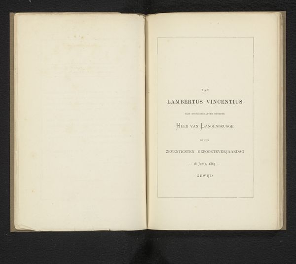 Curator: This image shows the open pages of "Lettere fin qui inedite di Evangelista Torricelli," printed in 1864. It presents previously unpublished letters of Torricelli, contextualized by a biographical sketch. It’s an incredible find from Giovanni Ghinassi. Editor: The immediate impact is quite remarkable—it looks both aged and delicate. The paper has taken on a beautiful cream hue that enhances the bold typeface. There's a sense of discovery here. Curator: Indeed. Typographically, it reveals much about the period. Note the almost hand-drawn quality of the typefaces and the way certain words and names are emphasized, imbuing them with historical weight and signifying the enduring importance of these texts and individuals. Editor: Absolutely. Consider Torricelli’s scientific legacy – he invented the barometer and advanced integral calculus, yet, the layout of this page subtly presents him more as a man of letters. This could tell us how 19th-century Italy constructed its intellectual heroes. Curator: The choice of fonts is interesting, isn’t it? We see a blending of Roman and, what appears to be, Greek lettering, reflecting perhaps the intellectual environment and cultural ambition of the time—linking Renaissance thinking with classical origins. The paper, showing signs of its age, also adds another layer to this connection to time and memory. Editor: It underscores how institutions and learned societies often shaped narratives around scientific achievement. This wasn’t merely about disseminating knowledge; it was also about shaping national identity through historical narratives. The act of publishing previously unavailable documents can reframe how history is received by new audiences. Curator: Seeing this artifact reminds us how historical texts carry a symbolic power, acting as vessels for remembrance and reinterpretation. By carefully preserving them, we continuously renew and revitalize cultural knowledge. Editor: It leaves me contemplating what it means to recover untold stories. We assign significance to artifacts based on shifting cultural and political priorities. Thanks to the printer’s meticulous hand, we’re now part of this continuous assignment of importance.