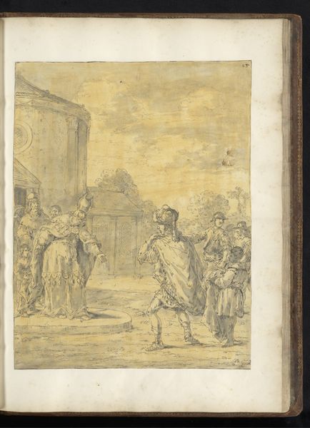 Leonaert Bramer rendered this drawing of Alexander the Great slaying Clitus with pen in grey-brown ink. The dramatic scene captures Alexander in a fit of rage, a spear piercing his friend Clitus. The raised hand of Alexander, once a symbol of command and victory, now signifies impulsive violence. We observe this gesture echoing through time, from ancient depictions of emperors to Renaissance paintings of biblical scenes, each carrying a blend of authority and potential for tyranny. Notice how the agony of Clitus, with his contorted body, mirrors ancient depictions of martyrs, reflecting a deep, subconscious association between suffering and transformation. This image is not simply a historical depiction; it's a potent representation of the cyclical nature of power, downfall, and the fine line between triumph and tragedy, continuously echoing through our cultural memory.