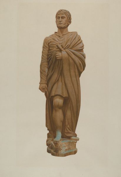 Here we see a drawing of a statue of Julius Caesar, made at an unknown time, by an unknown artist. The limited colour palette seems to suggest a preliminary sketch for a sculpture, but it also makes me think of those old photos where they hand-tinted people's cheeks. It's rendered with precision, capturing the texture of the stone, but also the softness of the light. Look at the way the artist renders the folds of Caesar’s toga and the shadows on his face. There's a real sense of depth and volume, even though it’s just a drawing. And the way the artist leaves the arms unfinished gives it a modern, almost abstract quality. It reminds me a little bit of those drawings by Agnes Martin, where she's trying to capture something ephemeral and intangible with very simple means. It's like the artist is trying to get at something essential about the figure of Caesar, rather than just creating a realistic representation. And maybe that's why they didn't bother finishing it, because the essence was already there.