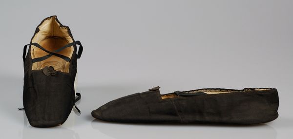 These are a pair of evening slippers fashioned by J. Petit, currently residing at the Metropolitan Museum of Art. The slippers, with their dark hue, speak volumes about the cultural symbolism of footwear. Consider, if you will, how shoes have evolved from mere protection for the feet to potent symbols of status and identity. The slippers, simple as they may seem, echo the ancient associations of footwear with journeys, both literal and metaphorical. In many cultures, the act of removing one's shoes signifies reverence and humility, a gesture of acknowledging sacred ground or social hierarchy. The delicate nature of these evening slippers, crafted for leisurely indoor use, contrasts sharply with the sturdy boots of laborers or the ornate sandals of emperors. It is a reminder of how objects, no matter how mundane, can carry within them the weight of history and the imprint of human experience, endlessly resurfacing and evolving through time.