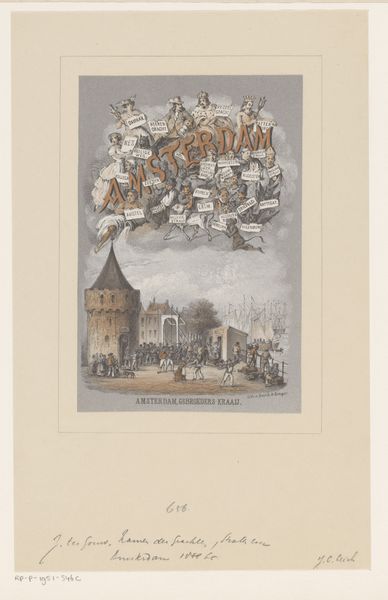 Curator: This vibrant print is titled "Sint Nicolaas te paard gezeten, / Laat alle goede kindren weten [(...)]" which translates to "Saint Nicholas on Horseback, / Let all good children know [(...)]", dating roughly from 1856 to 1900. The artist is Glenisson & Zonen. The medium is a color woodcut—a technique where the image is carved into wood, inked, and then printed. Editor: Well, my first impression is pure whimsy. It's so bright, even with the age. It feels like peering into a very charming, slightly tilted storybook. I am captivated by the hand-colored touches; each shade seems deliberately applied to enhance the joyful, carnivalesque mood. Curator: That "whimsy," as you put it, points directly to its function. These prints were popular ephemera. Cheaply made but colorful, sold around Saint Nicholas Day as souvenirs or gifts. This print depicts Saint Nicholas—or Sinterklaas, as he’s known in the Netherlands—a hugely important cultural figure associated with gift-giving. The image isn't just decorative; look at the verses around the image—they tell the story and reinforce the morals of the holiday. The narrative itself emphasizes social behaviour, community expectations, and reward distribution; and for those "good kids," a not so subtle warning. Editor: You’re right, there’s definitely a coded message happening there. I keep going back to the details, though; there's such personality imbued in such simple lines. That little boy at the edge of the road… almost indifferent. Maybe this all hits home because this is the kind of print that feels handmade, relatable... It pulls at that thread of nostalgic remembrance in us all. Curator: Nostalgia is definitely at play! These prints speak to constructed childhood ideals but are essential cultural documents. They allow us to explore and scrutinize class, commerce, and how moral structures perpetuate and mutate generationally. We must ask, too, who *defines* the 'good children' the poem addresses. Editor: Precisely! So, here we are. What began as sweet now provokes a delicious unease, because art—even seemingly simple folk art—mirrors ourselves back to us… It tickles and accuses. Curator: Absolutely. And through studying objects like these, maybe we, too, become those "good children," understanding and acknowledging where we come from.