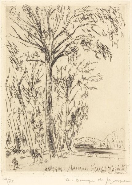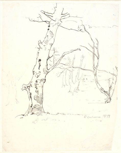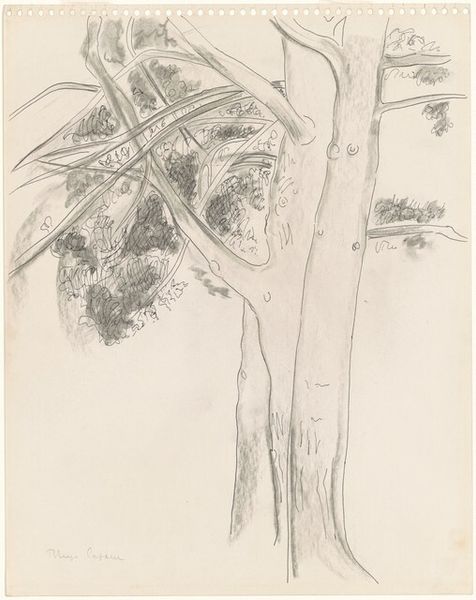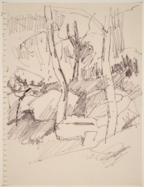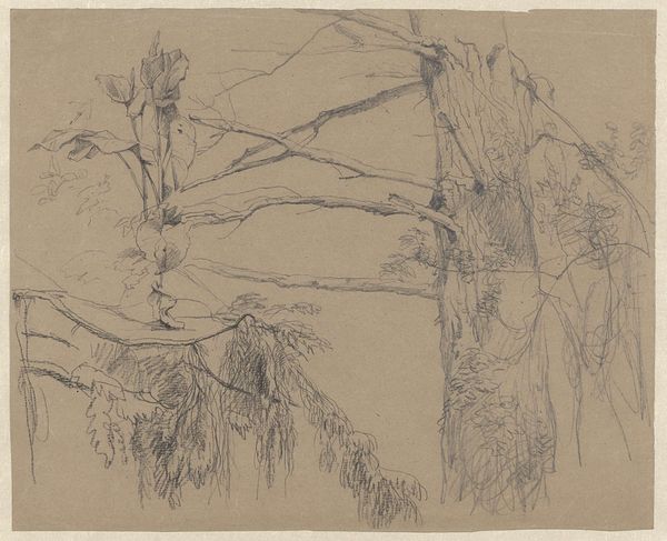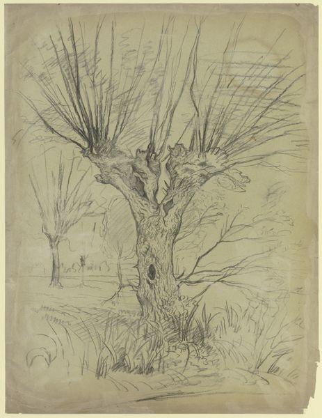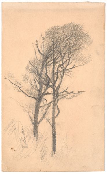 Editor: This quick sketch, "Boompje" – that’s “Little Tree” – made by Jozef Israëls sometime between 1834 and 1911, is primarily pencil and charcoal on paper. The light is beautifully captured here. What do you see in this piece beyond a simple landscape study? Curator: It's fascinating how Israëls, associated with the Hague School and its realist focus, simplifies the scene. But I also find it crucial to place Israëls and the Hague School within the socio-political landscape of the late 19th century. Considering the rise of photography and its impact on realism, what function does a sketch like this serve beyond documentation? Editor: That's a good question. Was it just a study for a larger work? Or did it serve some other purpose? Curator: Exactly. Sketches like these often were intended for personal study, and that gives us clues to Israëls process. But by showcasing even preparatory works in public institutions like the Rijksmuseum, we’re also shaping an understanding of the artist, even romanticizing the initial stages of creation as a demonstration of "authenticity" Editor: I see what you mean. By elevating sketches, we potentially change our perceptions of the artist's practice. Are we valorizing something meant to be ephemeral? Curator: Precisely. And in doing so, we're creating narratives about artistic genius that may overlook the labor, the social context, the artistic conventions also shaping Israëls’ choices. Is he rebelling or conforming? How do his artistic choices play into the artistic conversations happening during that time? Editor: That is insightful. It pushes us to think about art's public life, how it gains meaning. I’ll never look at sketches the same way again! Curator: The politics of imagery shapes the way that we contextualize the art! It’s a reminder that even seemingly simple landscapes are complex cultural objects, shaped by societal and historical forces, and framed, or unframed by us.