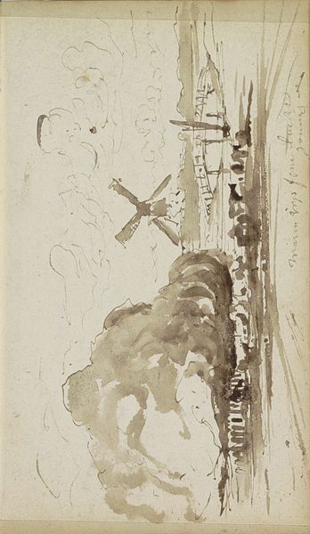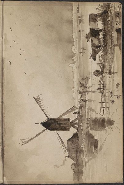 This is Johannes Tavenraat's "Landschap met een molen aan een rivier," housed in the Rijksmuseum, an ink drawing of understated simplicity. The landscape is dominated by muted tones, with the windmill rendered as a play of lines and angles, dissolving into its own reflection. Tavenraat employs a semiotic language of landscape, but one that seems to question its own representational strategies. Note how the verticality of the mill's structure is mirrored, almost destabilized, by its watery reflection, blurring the boundaries between the tangible and the illusory. The reduction of form invites us to consider the underlying structures of landscape painting itself. The scene avoids narrative, drawing our attention instead to the materiality of the ink. The lack of a firm boundary between the river, mill, and sky suggests a world in flux, a commentary on the ever-shifting relationship between nature and human construction.