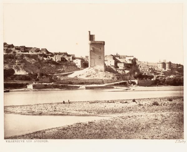 Editor: This is "Gezicht op de Engelenbrug en de Engelenburcht te Rome, Italië," a photograph by Giacomo Brogi, sometime between 1864 and 1881. The tones are really lovely – warm sepias – and the reflection in the water is mesmerizing. What strikes me most is the inclusion of both the Castel Sant'Angelo and St. Peter’s Basilica in the same image. What story is this photograph trying to tell us? Curator: Well, it's more than just a pretty picture, isn't it? Consider Rome at this time. Photography became a tool for constructing narratives of progress and modernity. Brogi likely understood that these two monuments, the Castel Sant'Angelo and St. Peter’s, held immense symbolic weight. The Castel Sant'Angelo, with its history stretching back to ancient Rome and its papal modifications, spoke to temporal power, whilst St. Peter's clearly refers to religious authority. Editor: So, by showing them together, is Brogi commenting on the relationship between the Church and the State? Was it a statement on power dynamics? Curator: Precisely. And, it’s a bit loaded as far as tourist photography is concerned. These images weren’t only made to appeal to tourists, but also constructed an idea of Italy for both internal and external consumption. The angle of the shot flattens the landscape and enhances that sense of co-existence and possibly collaboration. Photography, like any medium, served as a way to idealize particular versions of history, obscuring others. Editor: That makes sense. I always think of these old photographs as objective records, but they really are carefully constructed arguments. Thank you! I'll never look at tourist photography the same way again. Curator: It’s important to remember that seemingly straightforward depictions carry layers of historical and cultural meaning. This photo is more than just a picturesque view of Rome, and I have definitely appreciated digging into the context of its making!
