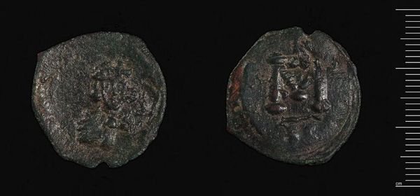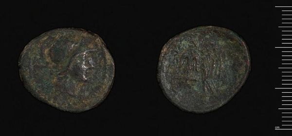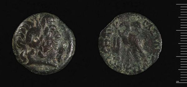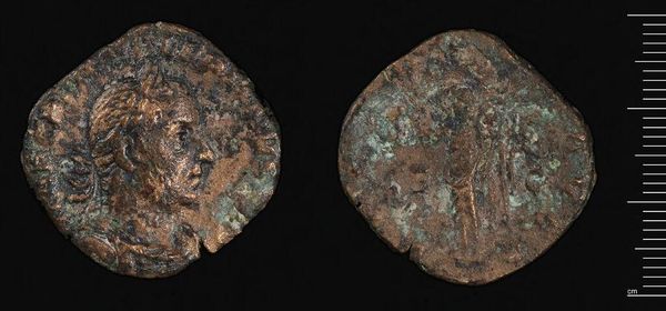 Editor: So this is an As or Dupondius of Faustina II. It’s a coin, really small, and it looks pretty worn down. What can you tell me about the imagery? Curator: Look closely at the portrait of Faustina II. Notice the hairstyle, the draped bust – these are symbols of Roman Imperial power. What memories and associations do you think these symbols evoked for the people who used this coin? Editor: I guess it would be a constant reminder of the empire’s strength and the emperor's family. Curator: Exactly. This coin wasn't just currency; it was a portable symbol of Roman identity. What do you make of the figure on the reverse? Editor: It looks like a woman standing, maybe a goddess? Curator: It is likely a representation of a Roman goddess, further reinforcing the empire's cultural and religious values. So, the coin is a tool for maintaining and spreading power structures. Editor: It’s amazing to think about how much meaning could be packed into such a small object! Curator: Indeed, it speaks volumes about cultural memory, doesn't it?