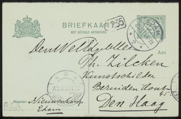 This ‘Briefkaart aan Philip Zilcken’ was made in 1892 by Joseph Mendes da Costa, and is held at the Rijksmuseum. It's a humble postcard, but it offers a glimpse into the late 19th-century art world of the Netherlands. Postcards like this were a new technology that facilitated communication in a rapidly modernizing world, and the postal markings point to an intricate network of institutions that were developing at the time. The very act of sending a postcard suggests a certain level of social connection and mobility. It speaks to the growth of an art world where artists like Mendes da Costa could maintain relationships with figures like Philip Zilcken, who was another artist working at the time. The Rijksmuseum's preservation of this seemingly mundane object highlights the role of museums in constructing historical narratives. By studying such items, we gain a richer understanding of the social conditions that shaped artistic production and exchange in the Netherlands. Resources like postal archives and biographical databases can illuminate the networks and institutions that fostered artistic creativity during this period. The meaning of art is contingent on its social and institutional context.