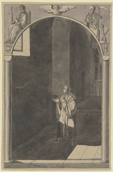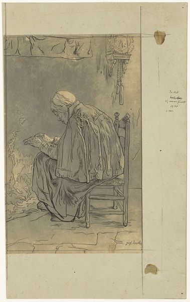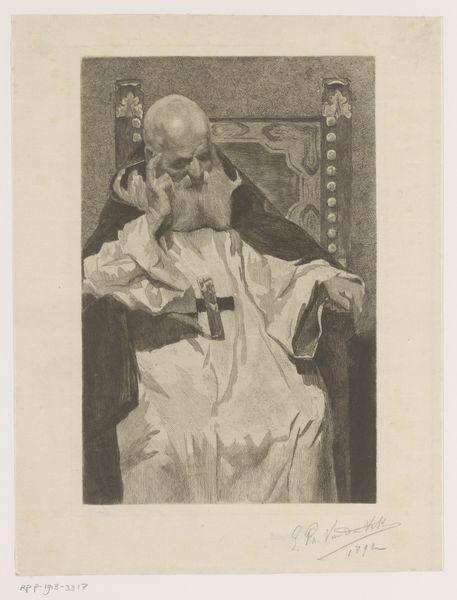 This is a photomechanical reproduction of a drawing, probably dating to the late 19th century, showing Gretchen looking out a window, after Faust. The photomechanical printmaking process allowed for the relatively quick and inexpensive creation of multiple images using photography and printing technology. This process democratized access to art by moving away from unique artworks created using traditional art practices, which involved intense labour, highly skilled traditions, and expensive materials. In this case, the drawing being reproduced, is characterized by fine lines and tonal gradations, carefully translated into a printed image. The use of this method allowed for the dissemination of artistic images to a wider audience, contributing to a growing culture of mass production and consumption. Looking closely, you can see how the tonal range of the original drawing has been rendered through the mechanical process. By emphasizing materials, making, and context, we can understand how reproductive technologies have reshaped the understanding and consumption of art.