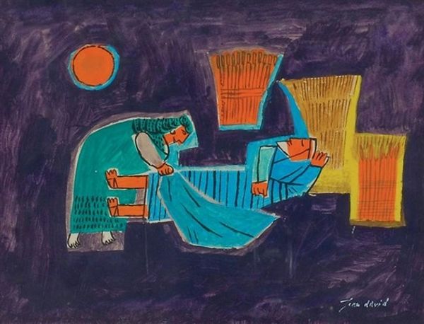 Willi Baumeister created “Nocturno” with oil, paint, and filler. It is an abstract composition featuring geometric shapes and linear figures against a blue background. Baumeister was a key figure in 20th-century abstract art. His work challenged the prevailing social norms of the time, particularly during the rise of Nazi Germany, when abstract art was considered "degenerate". His commitment to abstraction represented a form of resistance against the repressive cultural policies of the regime. He embraced the avant-garde movements in Europe and actively opposed academic traditions in German art schools. In our interpretation, we can investigate the role of institutions such as the Bauhaus, where Baumeister taught. By consulting historical archives, artist's letters, and exhibition catalogs, we can trace the development of abstract art and its complex relationship to social and political change. Art, as we understand it, always depends on its cultural and institutional context.