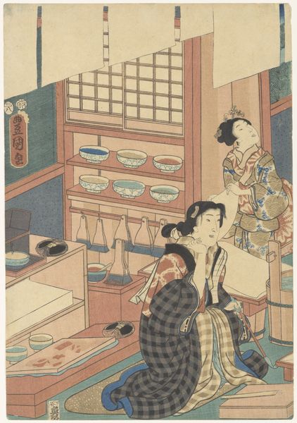 Utagawa Yoshikazu produced this woodblock print titled, *A Foreigner's Wine Party*, in Japan during the 1860s. The image offers a fascinating glimpse into Japan's encounter with the West in the late Edo period. It depicts Westerners gathered around a table, possibly celebrating a birthday, with a woman serving drinks. The artist meticulously captures their attire and customs, offering insight into how Westerners were perceived and represented in Japanese society at that time. The scene itself takes place indoors, with a Western style interior. Japan's opening to foreign trade after centuries of isolation brought about a surge of interest in Western culture. Prints like this served as a window into a world previously unknown to many Japanese. They reflect both curiosity and a degree of cultural negotiation. Historians rely on a variety of sources, from diplomatic records to popular literature, to understand the complex dynamics of cultural exchange. By studying images such as this, we gain valuable insights into the social and institutional contexts that shape artistic production and reception.