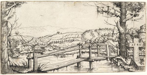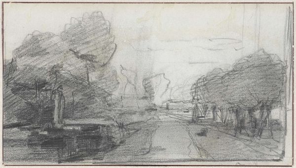 Curator: Daubigny’s "The Departure or The Return" rendered in 1862, presents us with a rather evocative scene using pen and ink. It resides here with us at the Met. My initial reaction is a sense of anticipation—a journey beginning or ending. Editor: I agree. The rapid, almost frenzied linework—particularly in the sky—injects an interesting sense of turbulence. Tell me more about its structure. The diagonal lines lead the eye from the water’s edge to the train… Curator: The composition’s reliance on diagonal thrust indeed compels the viewer. Consider the dark ink that articulates the train as it moves right, creating a tension with the more blurred steamboat. Perhaps that mirroring echoes the artist’s suggested duality in its title. Editor: Intriguing thought. The symbolism of trains and boats...they were fairly new then, embodying a rapid societal transition that left some at the port as it passes. This industrial era's ambition is somewhat dampened by the image's monochromatic and somewhat fleeting rendering. Curator: It's almost a snapshot, yes. The sketch is concerned more with suggestion than exact representation. Even the horizon appears to shift with uncertainty! Editor: The image evokes nostalgia while underscoring modernity's disruption of it. The fleeting sky connects earth with sky as the train and the boat pull from this connection... perhaps departure AND return. Curator: Yes! That connection to Daubigny's potential reference to "pastoral versus progress". The sketch seems so unassuming, yet it holds the key for unlocking the door into our deeper understanding of how technological change affects the collective human spirit. Editor: It has definitely altered my original impressions! This journey to nowhere suddenly feels layered and heavy with both intent and content.