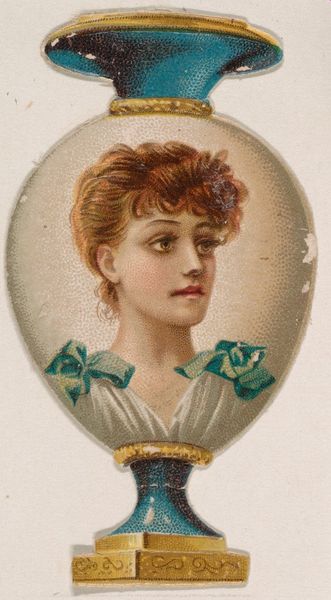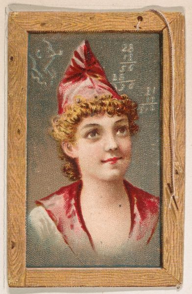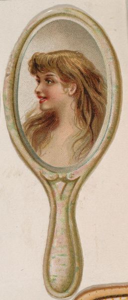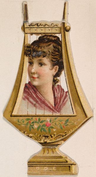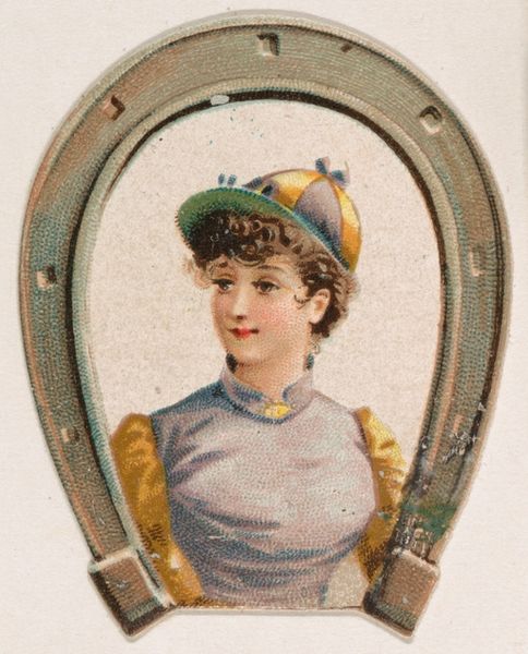This small lithograph, "Snowshoe," was produced by the Kinney Brothers Tobacco Company as part of their Novelties series. These cards were inserted into cigarette packs and reflect the aesthetic of the late 19th century. The image presents a white woman framed by a snowshoe, a winter tool historically used by Indigenous peoples in North America. This juxtaposition is telling of the colonial gaze that appropriates and commodifies indigenous culture. The woman's refined features and fashionable attire speak to the consumer culture of the time, where beauty and novelty were packaged together to sell tobacco. The "Snowshoe" card transforms a functional object into a decorative emblem, indicative of broader societal trends where indigenous artifacts were often divorced from their original context and turned into exotic curiosities. Consider the layers of representation at play here: a commercial product, an idealized image of femininity, and a token of indigenous culture, all intertwined.