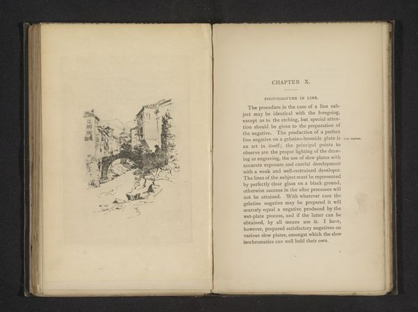 Curator: Here we have a photographic print from before 1877, titled "Monument voor Johann Bernhard Basedow in Maagdenburg," housed here at the Rijksmuseum. It's an image within a book, open to a page about the history of gymnastics, actually. What are your first thoughts? Editor: Well, it’s pretty melancholic. I see this aged, sepia-toned photograph of what looks like a gravesite, shrouded somewhat in shadow. There’s a stark fence, almost a cage-like enclosure, which gives me a feeling of… confinement. Is this about someone who didn’t live so freely? Curator: In a way, yes. The monument commemorates Johann Bernhard Basedow, an educational reformer and a key figure in the Philanthropinist movement, which emphasized practical and physical education. The open book connects him to gymnastics because he saw it as vital to holistic learning. Editor: So, this isn’t just a grave marker, but a symbol of his educational philosophy. The bars, though, still trouble me. They read as barriers to his ideas or perhaps the limits even the most radical reformers face? It's curious to juxtapose revolutionary ideas with what seems like eternal restraint. Curator: That's an interesting observation. The fence could symbolize the structures that Basedow’s educational methods challenged. Or, more plainly, perhaps the limits placed on individuals in general, even those trying to advance societal progress. There is also the tree with leaves. The growth implied seems to contrast the immobility of a monument... Editor: Right, like life and death locked in a strange conversation. Plus, seeing this photograph reproduced in a book, layers another layer of memory. It transforms the physical memorial into something that exists primarily as an idea, reshaped by each reader's interpretation. I imagine its effect during the 1870s would've been different... Curator: Absolutely. This book provides both historical record and artistic interpretation. A tribute, preserved through print. In a way, it makes his legacy less a fixed "monument" and more an ever-evolving set of meanings. Editor: Which I guess returns to his idea about education being transformative. The man is gone, but the questions he raised, represented by this picture, are still asking to be considered.