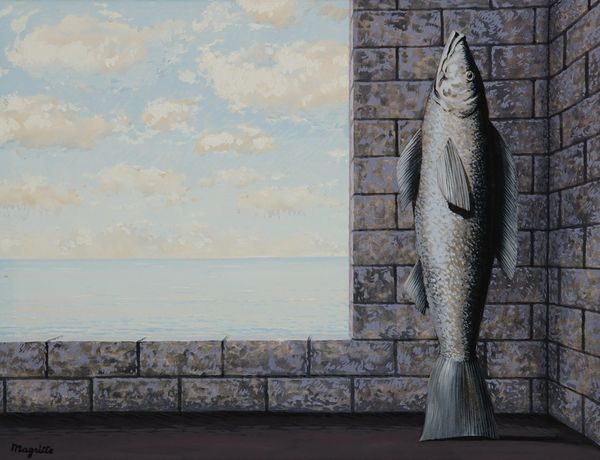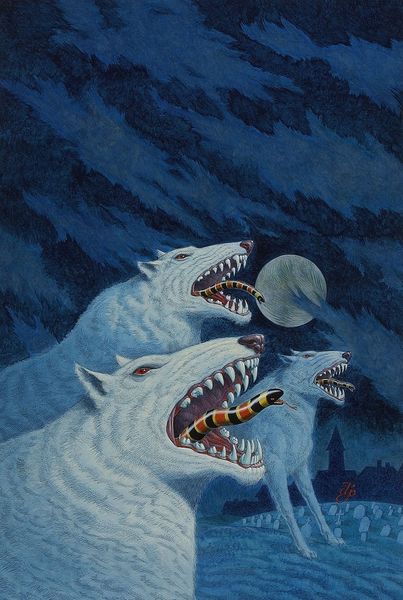 Editor: This oil painting is titled "Pool Shark" by Lucia Heffernan, its date is unknown. The work depicts a shark playing pool, in what looks like a very dimly lit billiard room. I find the scene oddly humorous, but also menacing, with the shark’s grin and sharp teeth. What’s your take on this peculiar image? Curator: It strikes me as a potent allegory for power dynamics, Editor. Sharks, historically, have been used to symbolize predatory capitalism, right? Think of the ruthless businessman stereotype. By placing the shark in a pool hall, engaging in a game of strategy and chance, Heffernan seems to be commenting on how power operates, camouflaged in leisurely settings. Editor: That makes sense. I was focusing more on the humor, but I see your point. Are you suggesting that the pool game itself symbolizes something? Curator: Precisely! Pool requires calculation, deception, and a degree of aggression. Considering that, in conjunction with the smoke of the cigarette and somewhat shadowy milieu, how might that be reflective of spaces or societal positions where those elements may prevail? Who benefits from those characteristics becoming associated with progress? Editor: So it's not just a funny image of a shark, but a commentary on social Darwinism, where the "fittest" – or most ruthless – win? Curator: I think so, Editor. But what does "winning" even mean here? Does dominating a game of pool actually equate to genuine progress or a contribution to society? Editor: I hadn't thought of it that way. So, what initially appeared to be just a playful image might actually be a rather pointed critique. Curator: It pushes us to consider those broader implications embedded within a seemingly light-hearted painting. It's about unveiling power structures disguised as innocuous games. Editor: That’s a very different perspective than I had at first! Thanks, I’m definitely going to look at art differently from now on.