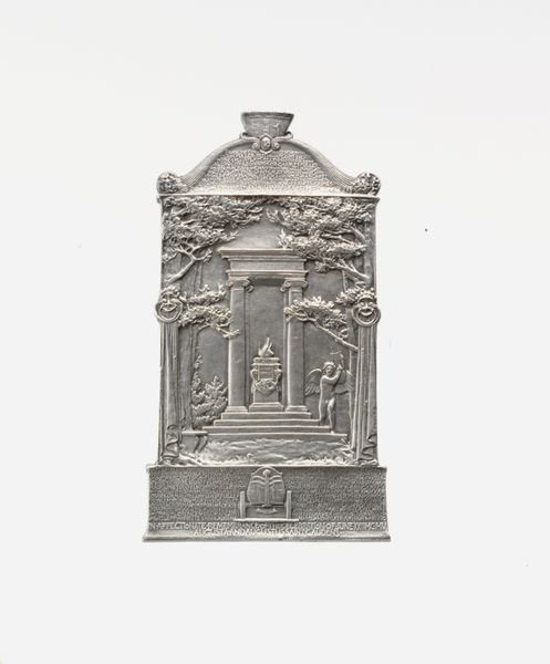 Curator: Standing before us, we have Augustus Saint-Gaudens' "Cornish Celebration Presentation Plaque," crafted in 1905. This remarkable artwork resides at the Metropolitan Museum of Art in New York. It's cast in bronze, executed as a detailed relief. Editor: It strikes me as a neoclassical tableau, almost theatrical. The golden bronze lends it a mythic grandeur, like something recovered from an ancient, hallowed site. Curator: The piece does embody neoclassical elements in its structured composition and use of allegory. This work was a commission commemorating the Cornish community. We can delve into how immigration from Cornwall in England has shaped industries here in America and brought a lot of traditions. The use of classical architectural motifs suggests an effort to link this relatively new cultural contribution to a grander narrative. Editor: Note how Saint-Gaudens orchestrates a rather elaborate play of depths within the relief itself. See the positioning of architectural forms, and that foliage. It serves to pull the eye deeper into the composition while at the same time being restricted by the borders and shallow depths imposed by the medium itself. Curator: Indeed. And beyond pure aesthetics, the layout reflects Saint-Gaudens’ social awareness of that moment. By merging the grandeur of classicism with a contemporary story of the immigrant experience, he honored their presence. Saint-Gaudens actively sought to legitimize the everyday life of immigrant populations into grand narratives and histories. Editor: A brave new world deserves brave new histories. Though, there's that persistent classicism. Look at the symmetry! Is there any genuine possibility for a truly new story to be told via means of formal traditions that are, well, so blatantly self-conscious? Curator: The tension, precisely, fuels the drama! I feel that tension, both artistically and culturally. Perhaps what resonates today is not just the individual’s technical mastery but the inherent and ongoing debate this work seems to have embraced from its inception. Editor: Pointedly. I came ready to argue that "history is bunk," as some famous auto industrialist once blurted. Yet standing before it I'm again ensnared. So, well played. Curator: Likewise! This plaque encourages us to continuously question whose stories take center stage and how societies shape their narrative legacies.