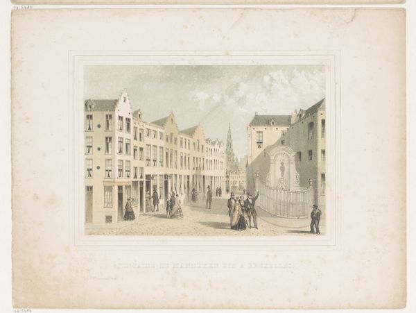 Pieter Wilhelmus van de Weijer created this print of the Mariaplaats in Utrecht using etching and aquatint. The image presents a tranquil, ordered town square, with a church tower centrally positioned, drawing the eye upward. The composition is structured to create depth, employing linear perspective to guide the viewer through the space. Figures populate the square, adding a sense of scale and life, but they are rendered in a way that integrates them into the architectural framework, rather than standing out as individual subjects. This integration speaks to a structured society, where the individual is part of the larger urban system. The aquatint technique softens the lines, giving the print a somewhat diffuse quality, which tempers the precision of the architectural details. This softening effect is an important aesthetic choice; it suggests a world observed rather than engineered, a balance between objective representation and subjective experience. The print serves not just as a visual record but also as a cultural artifact, revealing the values and perceptions of its time.
