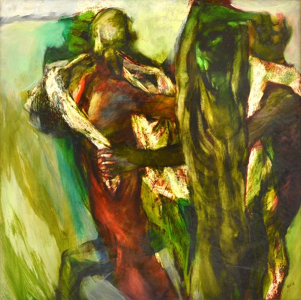 Ernst Fuchs painted "David and Bathsheba (II)" with an approach to color that’s, well, kind of psychedelic. I see a process of layering, a building up of tones to create these almost otherworldly figures. There’s this incredible texture in the robes and headdresses; it feels like Fuchs was really digging into the paint, letting it build and create its own landscape. The colors are intense, almost vibrating against each other, but it's the single tear running down David's face that really gets me. It's a tiny detail, but it speaks volumes about guilt and desire, the push and pull of human emotion. It's like he’s not just painting a scene, but a whole internal world. Fuchs reminds me a bit of Gustav Klimt, in that both artists were exploring these psychological and spiritual realms through intense color and ornamentation. Art, after all, is an ongoing conversation.