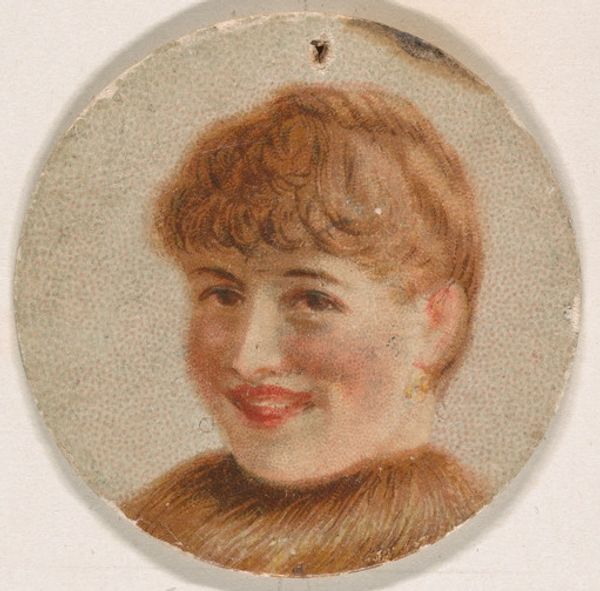 This small portrait of a woman, part of the Novelties series by Kinney Bros., presents a vision of youthful, rosy-cheeked innocence, a popular ideal at the turn of the century. Consider the smile: it is a motif, a gesture, that transcends time. From ancient Greek sculptures to Renaissance portraits, the smile appears, yet its meaning shifts. Here, it signifies more than mere happiness. It suggests accessibility, a connection to the viewer, and a subtle invitation into the world of the commodity. This is a sentiment we see repeated in commercial portraiture throughout history. The circular format adds another layer, evoking the Renaissance 'tondo,' a format often used for intimate portraits, suggesting a sense of completeness and containment, but here, it serves a different purpose, turning the individual into a collectible object. This melding of art and commerce engages our subconscious desires, linking beauty with consumerism. It is a potent symbol, whose power continues to resonate today.