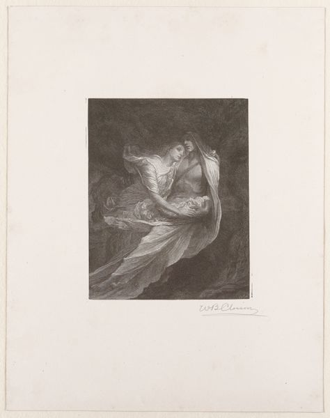 Emile Frédéric Salmon produced this etching of a woman with folded hands and windswept hair sometime in the late 19th century. The image encapsulates the Romantic movement’s preoccupation with extreme emotion. Consider the religious associations of the woman’s posture; clasped hands often indicate prayer, a plea to a higher power during times of distress. The woman’s apparent fright also speaks to the period’s interest in intense psychological states, explored in the literary works of Edgar Allan Poe and the dramatic paintings of Eugène Delacroix. Such cultural themes are indicative of the social uncertainty that followed the Industrial Revolution. Artists responded by turning inward, towards the individual’s emotional experience, in search of a sense of stability. Further exploration into Salmon’s life and the artistic institutions he was involved in would give us even more insight into the image’s significance. Art is always shaped by the context in which it is made.