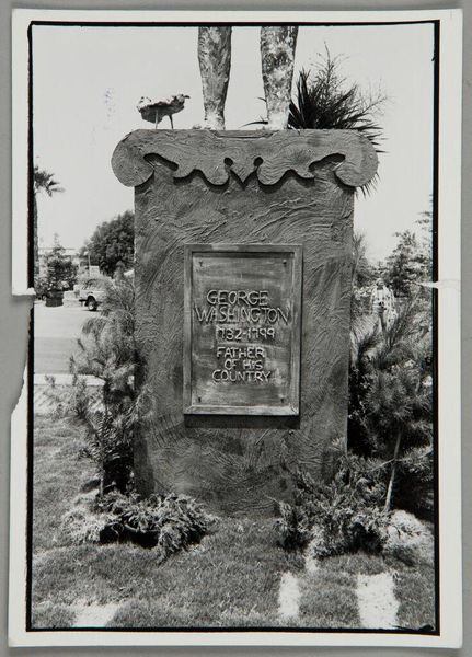 Curator: This monument, "Untitled (West Hills Memorial: sculpture of the Lord's Prayer)" by Ken Whitmire Associates, presents the Lord's Prayer carved in stone. What strikes you about it? Editor: It feels very formal and imposing, and perhaps a bit out of place in a secular museum. What can you tell me about its context? Curator: Consider the historical moment it was created. What communities might have felt excluded by this very public, very permanent display of a Christian prayer? It raises questions about power, representation, and whose stories are told in public spaces. Editor: So, it's less about the artistic merit and more about the social implications of such a work? Curator: It's both. The deliberate choice to monumentalize a religious text inherently carries a social and political message. Editor: I see. I hadn't considered the implications beyond the prayer itself. Thank you. Curator: It's a reminder that art often reflects and reinforces existing power structures.