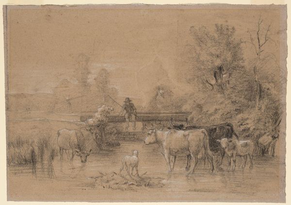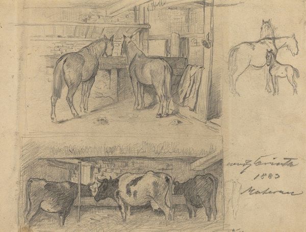 Johann Adam Klein rendered this drawing, "Oxen and a Horse at the Farrier's," with chalk and pencil. It depicts a pastoral scene where animals are being tended to, a seemingly simple subject, yet steeped in symbolic weight. The oxen, symbols of strength, servitude, and sacrifice, stand patiently. Across cultures, the ox appears. From the ancient Minoan bull-leaping rituals to the sacrificial oxen of Roman antiquity, their strength is forever entwined with ritual. Even now, the ox evokes the primal connection between humans and the natural world, and our dependence on animals for our survival. Consider how Klein renders the farrier’s tools, mere background objects, yet potent symbols of human mastery over nature. This act of shoeing, of controlling the animal’s gait, echoes through time. The emotional depth of this drawing lies in its portrayal of the animals’ stoic acceptance—a poignant reminder of the sacrifices inherent in our shared existence. This drawing is a continuation of a narrative that stretches back millennia, constantly resurfacing and evolving.