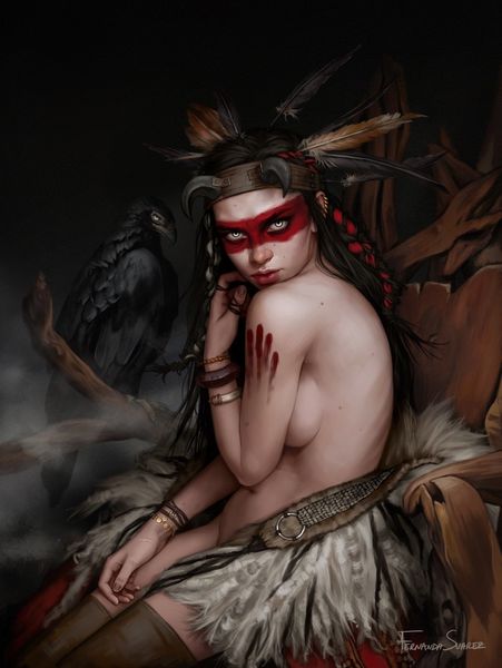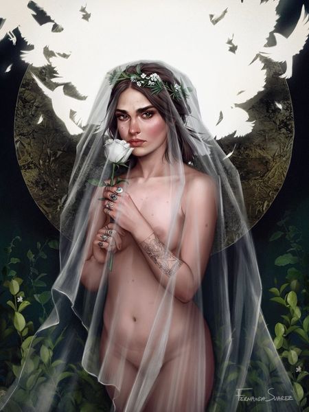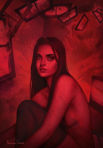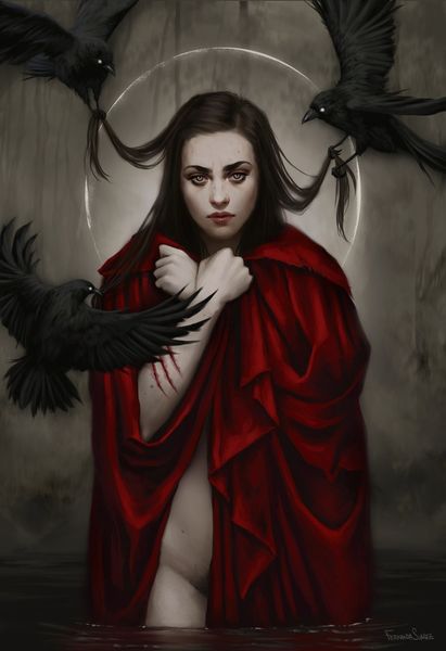 Fernanda Suarez created this digital painting of a modern-day Little Red Riding Hood in the 20th century. The artist reframes the traditional fairytale by placing a mature and somber Riding Hood in a dark and ambiguous setting. The bright red cloak, a strong visual code, still hints at the original tale. But the woman’s bare skin, the window with its absent light, and the scars on her arms suggest something more complex. Consider the changing role of fairy tales in culture. What was once a simple cautionary tale for children becomes a powerful symbol of feminine strength and resilience. This is especially seen in a time when the stigma around mental health is lessening and people are speaking out, as can be seen with the scars. Research into popular culture might reveal a deeper understanding of the artwork. Examining different versions of Little Red Riding Hood stories can offer different insights. This artwork reminds us that images are not neutral; they’re shaped by the societies in which they’re made.