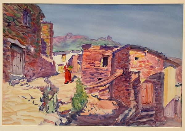Martiros Sarian made "Gathering of Grapes" in 1933, and it looks like he's used oil on canvas to create this vibrant scene. The brushstrokes are so free, almost like sketches in paint, giving the whole piece a sense of immediacy. I love how Sarian handles color. It’s not about matching reality, but about feeling it. Look at the way he mixes greens and yellows in the hillside where the figures are working. It's a sea of activity, rendered with such energetic strokes. The figures themselves are simplified, almost abstract, yet they convey the labor and life of this community. There is something very Cezanne-like about the way he builds form with color, but with an expressionistic intensity that feels uniquely Sarian's. This painting isn't just a picture; it's an experience.