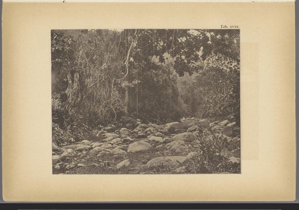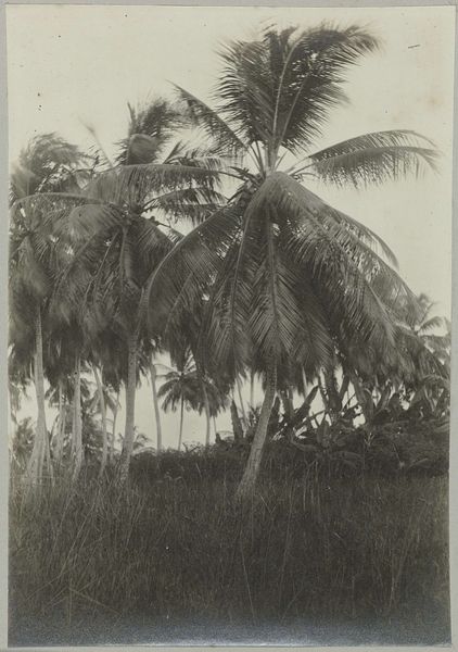 Editor: Here we have "Aanleg van een weg op de Linggah Estate, Sumatra" – that's "Weg Linggah Estate" in English – a photograph taken by Carl J. Kleingrothe around 1885-1900. It shows exactly what the title suggests: the construction of a road through a lush landscape. What strikes me is the stillness of the scene, despite the activity implied. What stands out to you? Curator: The photograph certainly encapsulates a moment frozen in time. Kleingrothe is not merely capturing a road under construction; he is invoking powerful visual symbols of transformation and, perhaps unconsciously, cultural exchange. The road itself, in this context, transcends its purely functional purpose and turns into a signifier of penetration into, and domination over, the natural world. Editor: Domination, you say? Curator: Yes. Roads have historically symbolized not just physical access, but also access to resources, to control, and ultimately to power. How do you read the contrasts between the seemingly untouched jungle and the brutally direct road being cut through it? Consider the psychological impact. Editor: I see it as a clash. The raw, untamed nature is being confronted by this human desire for order and control. There's a tension between the dense, almost impenetrable foliage and the clear path forward. It's like two different worlds colliding. Curator: Precisely. And consider how this single image can unpack the much broader theme of colonialism and its effect on landscapes and cultures. Visual memory persists; an image like this echoes long after the road is completed, becoming a potent symbol of progress and potential cultural erasure. Editor: I hadn't thought about it that way, but now I can see the road as this… symbol of more than just getting from one place to another. Thanks, that really gives a different perspective!