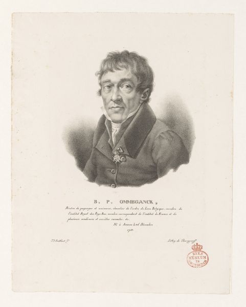 Curator: The severe realism captures the subject without idealizing him, it's really intriguing. Editor: That's certainly one way to describe it. This is a print dating back to 1822, "Portret van de zoöloog André Marie Constant Duméril" by Julien-Léopold Boilly, showcasing the zoologist Duméril. It employs an engraving technique. Curator: Yes, I noticed the cross-hatching, really creating tonal variation despite the monochromatic nature of the engraving. It is almost photographic, considering its period. But more than that, it really shows you the era. The ‘Institut Royal de France’ proudly displayed. And ‘Membre de la Legion d’honneur’. Editor: Indeed. Boilly seems keen to position Duméril within these institutions of power and prestige. His scientific contributions alone are not enough; it's the association with established academies that grants him full recognition. Curator: Agreed, it serves to establish his social standing just as much as his intellectual merits. And note his face is somewhat stern, no softness shown at all. A portrait for the scientific record, no fluff involved! The slight upward turn of his mouth shows some sort of warmth. Editor: Perhaps. Though, that might be wishful thinking based on our contemporary lens. This formal austerity resonates with the Neoclassical style dominant at the time – prioritising reason and clarity over romantic sentiment. Duméril looks rather steadfast to me. Curator: Which speaks volumes about the changing status of scientists within society at the time. A man of science given almost statesman-like treatment, with great visual impact. What is truly striking, looking closer, is the accuracy of lines made for printmaking, quite incredible to witness. Editor: Precisely. The fine lines render a remarkable texture to the face and clothing, lending depth to the piece. Although an engraving, the artistic value rests in its societal value for the science world. It’s a study not just in Duméril's likeness, but of societal ideals too. Curator: True, by dissecting Boilly's approach and decoding its visual language, we gained much more than mere observation today. Editor: Indeed, this portrait not only captured the likeness of a prominent zoologist, but it has now unveiled some societal layers we are privileged to uncover.