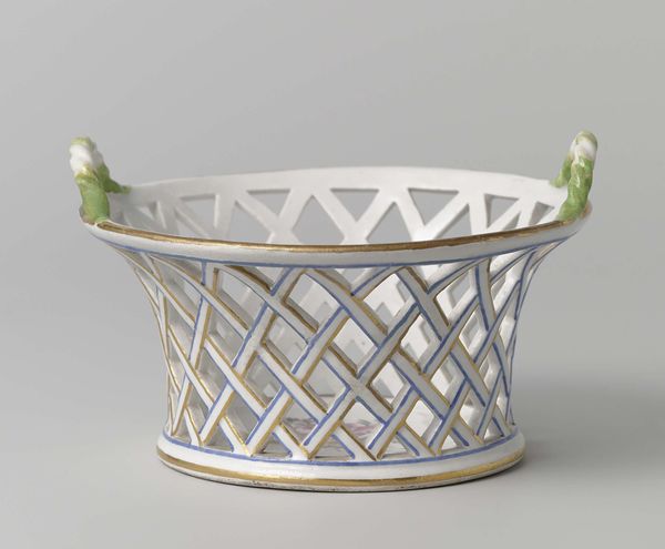This basket, made in Loosdrecht, is formed from delicate porcelain, painted with a colorful array of flowers. The material is key here. Porcelain, a refined type of ceramic, speaks to a culture of luxury and sophistication. Look closely and you will see that the basket is intricately constructed. The fine lattice work, the delicate floral appliques - all of these elements would have demanded skilled labor, and considerable time in the making. Porcelain production was, and remains, a complex process, involving precise firing temperatures and careful handling. The painting, too, is meticulously executed, each flower rendered with naturalistic detail. Objects like this speak to the intersection of craft and industry. While rooted in skilled handwork, porcelain production was also an enterprise, with workers producing for a market eager for beautiful, refined goods. Appreciating this basket means recognizing the craftsmanship that went into its creation, as well as its place within a wider system of production and consumption.
