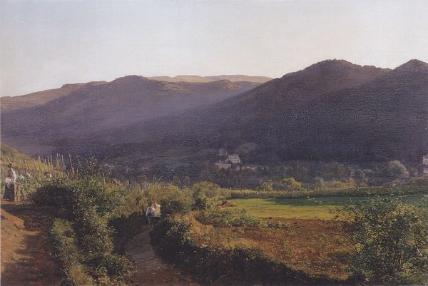 Albert Bierstadt painted "Landscape. Hill and Dale" in the 19th century, a period marked by westward expansion in the United States and an increasing interest in the natural landscape. Bierstadt, a German-American painter, made a name for himself with his grandiose depictions of the American West, yet here he turns his eye to a more pastoral scene. While seemingly benign, landscapes like these played a role in shaping national identity and justifying territorial expansion. The romanticized view of nature often overlooked the displacement and marginalization of indigenous populations. There is an inherent tension between the aesthetic appreciation of the land and the political and social realities of its possession and use. Bierstadt’s technical skill is evident in the detailed rendering of the landscape, and his emotional connection to the land comes through in the way he captures the light and atmosphere. What do you feel when considering nature as both a personal sanctuary and a site of historical complexity?