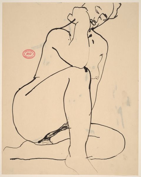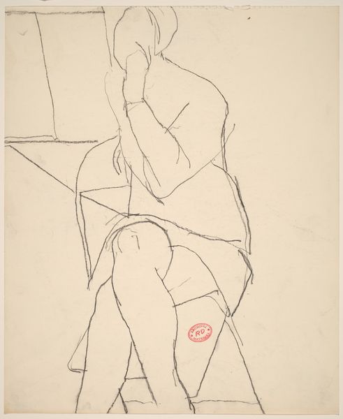 Curator: This is an untitled pencil drawing by Richard Diebenkorn, likely created sometime between 1955 and 1967. It presents a seated female nude with one leg drawn up to her chest. Editor: It feels incredibly raw, almost like a fleeting thought captured on paper. The line is so immediate, you can practically feel the artist’s hand moving. There's a quiet intimacy to the sketch. Curator: Indeed. That rawness speaks to Diebenkorn's commitment to process. The simplicity of line betrays a deeper symbolism, too, I think. It presents the human figure stripped down to essential form and posture. There is something about this posture of seated repose that recalls classical images of Venus. Editor: I agree the immediacy comes from his process. Think about the kind of labor invested here – the choice of such an inexpensive medium emphasizes accessibility. He doesn’t rely on expensive materials to convey meaning. It's about the line, the hand, the simple graphite, paper surface, and the fleeting, shared experience. Curator: And in its unadorned quality, the lack of precise facial features, perhaps Diebenkorn invites us, the viewers, to project our own emotions, histories, even cultural understandings, onto the figure. The lack of detail encourages identification. Editor: Yes, there is also something beautiful in that the quick rendering invites us to also consider the labor involved, or rather not over-involved. Curator: So while ostensibly simple, the work's beauty is deeply complex, rooted in art history while exploring our emotional connection to the human form. Editor: I'd say this speaks to an intimacy achieved precisely because it's not overwrought, carefully polished, or precious. Instead, it's immediate, tangible labor. Curator: Exactly! I leave thinking of drawing’s enduring power, how simple materials and sensitive hands are a potent medium. Editor: And the simple, expressive graphite reveals beauty inherent in modest means of production.
