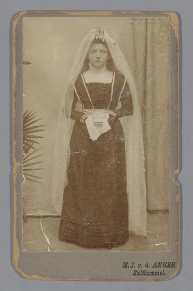 Victor Plumier crafted this photographic portrait of a girl using the daguerreotype process. The composition immediately draws us in with its contrasting light and shadow, framing a delicate figure. The girl, dressed in what appears to be a veil, is positioned against a dark backdrop. The artist’s structural arrangement of the photograph employs sharp lines and soft curves, especially in the draping of the veil and the subject’s posture. The limited tonal range, typical of early photography, emphasizes form and texture. Plumier's decision to capture such a moment raises questions about representation and the construction of identity. The subject's expressionless face invites the viewer to project their own interpretations onto her, reflecting broader concerns about photography's role in shaping perceptions. Ultimately, the interplay between light, shadow, and the figure's placement reveals not just a portrait, but a structured commentary on visibility and presence within the rigid social structures of the time.