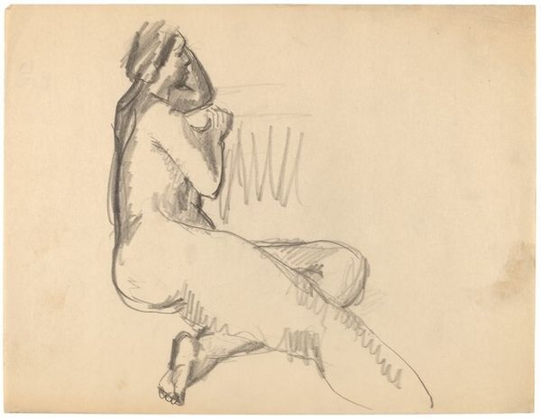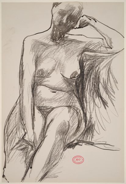 Mark Rothko created this drawing, "Nude Woman Seated in a Chair," with pen on paper. The lines, scribbled and frenetic, work together to define the space of the composition. This emphasis on line rather than tone gives the drawing an unfinished quality, yet one that offers an immediate glimpse into the artist’s process. The rapid marks, like semiotic codes, construct the figure; the woman’s form emerges through a network of lines, each stroke adding to the collective representation. Rothko uses the line to capture not just the figure, but also the form's relation to the structural foundations of shape and spatial relationships. The seemingly spontaneous construction through line reveals the artist's exploration of form, resulting in an image that emphasizes the act of seeing and representing. It invites us to consider the interplay between representation and abstraction.