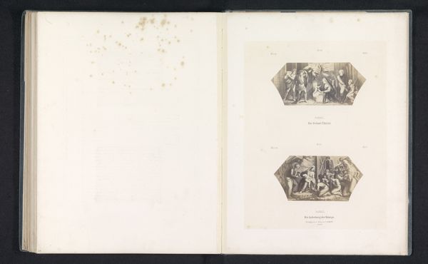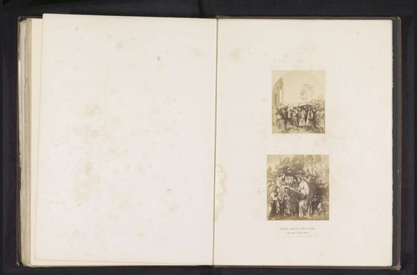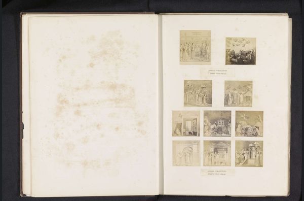 This is a collection of seven photo reproductions, taken from a publication by the Arundel Society, featuring works by Ghirlandaio and Giotto. The Arundel Society, founded in 1848, played a crucial role in disseminating knowledge of Renaissance art through reproductions. These reproductions, carefully pasted onto album pages, were made using a range of printmaking techniques, likely including lithography and engraving. The society commissioned artists to create faithful copies of frescoes and paintings, which were then translated into prints. This process involved a skilled division of labor, with artists, engravers, and printers each contributing their expertise. The resulting prints, such as these reproductions of Ghirlandaio and Giotto, allowed a wider audience to experience masterpieces that were otherwise inaccessible. The Arundel Society's work reflects the growing interest in art history and the desire to make art more accessible to the public. It also highlights the value of reproduction as a means of preserving and sharing cultural heritage. In appreciating these reproductions, we gain insight into the artistic, social, and economic forces that shaped the Victorian art world, blurring the boundaries between art, craft, and commerce.