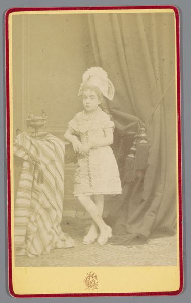 Curator: Let's consider this portrait by Walery, active between 1873 and 1885. What do you see? Editor: A wistful glance into another world. He's like a tiny diplomat sent from a fairytale court, burdened with secrets he can't quite articulate. The sepia tones enhance that dreamlike, slightly melancholic quality. Curator: It's an albumen print, a popular photographic process of the era, giving it that distinct tonality. The formal arrangement places the subject, an unidentified child, within an oval frame, focusing attention on his face and costume. Editor: The costume! Absolutely extraordinary. The details in the embroidery seem to dance even within this small space. A miniature symphony of stitches—all holding its breath. It feels rich and heavy with tradition and purpose. Curator: The clothing provides key information; note the detailing, which offers cultural context and could hint at the subject's background, even status. It serves to define the child, framing our understanding within its sartorial language. The materiality signifies identity and perhaps, aspiration. Editor: It’s beautiful, really beautiful, but I’m wondering who picked out the clothes and decided, at least for the moment of capture, that this child should hold history—and destiny—on his shoulders. How long did he actually stay in costume? Does he remember? What did it mean to *him*? I can't help but imagine his life off-camera, moments of play and dreams unburdened by garments heavy with representation. Curator: A valid observation, though, of course, those subjective interpretations lie beyond the strict scope of photographic evidence and compositional intent. Nonetheless, it is worth noticing how the formal choices are framed. Editor: I find my response framed with nostalgia. Curator: An emotional reaction speaks to art’s intrinsic power, as always, and even beyond analytical interpretation. Editor: Perhaps every portrait is equally about absence as it is presence?