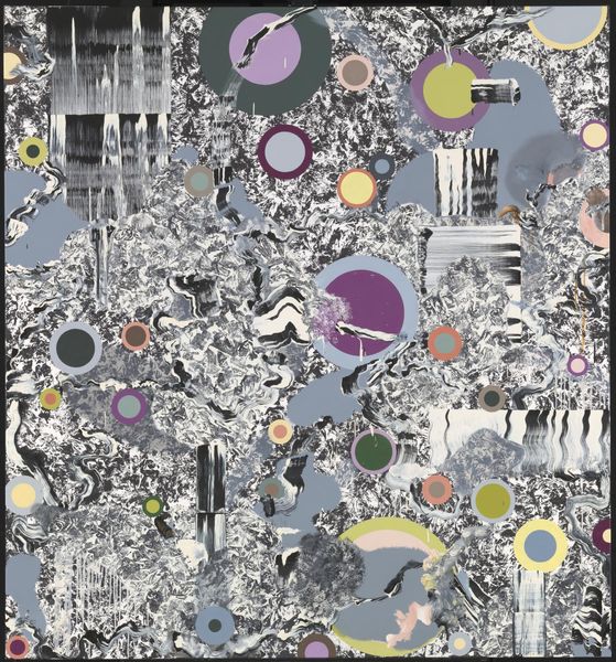 Editor: This untitled work by Alfonso Ossorio features chaotic, swirling shapes and splatters of paint, mostly purple, green, and black. What can you tell me about the process behind a piece like this? Curator: We can see a real emphasis on the materiality here. The layering of inks and the way they bleed into the paper suggests a process-oriented approach. Does the lack of clear form challenge traditional notions of artistic skill in your eyes? Editor: It does a bit. I guess I expected something more...deliberate? Curator: But isn't there something deliberate about the choice to relinquish control? Ossorio's process reflects a post-war anxiety, where chance and the subconscious are valued over rigid structure. This "all-over" composition dissolves hierarchy. Editor: That makes sense. So it’s not just random splatters; the method is the message. Curator: Precisely. And the lack of a title reinforces that, shifting focus from narrative to the physical act of creation itself. Editor: I never considered how the title was also an important material aspect!