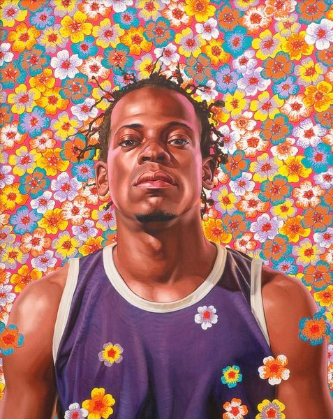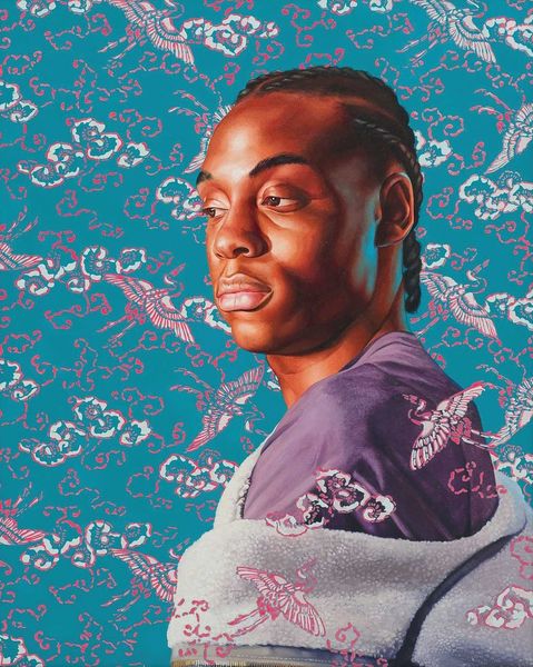 Kehinde Wiley made this portrait, Luiz Carlos Neves Dos Reis Study II, using traditional painting materials: oil and enamel on canvas. Wiley’s process often begins with “street casting,” finding models in urban environments. He then photographs them in poses inspired by classical paintings. The subject’s clothing, hairstyle, and attitude play against the historical references. The backdrop here, a vibrant turquoise floral pattern, is also carefully chosen; in some cases, Wiley has collaborated with textile designers to create custom fabrics. The labor involved in these paintings is considerable, from the initial casting to the meticulous rendering of the figure and background. This connects to broader social issues of labor, politics, and consumption. Wiley’s work challenges traditional art historical hierarchies by placing contemporary Black figures within the canon of Western portraiture. By emphasizing materials, making, and context, Wiley challenges traditional distinctions between fine art and craft, and prompts us to rethink the power dynamics inherent in representation.